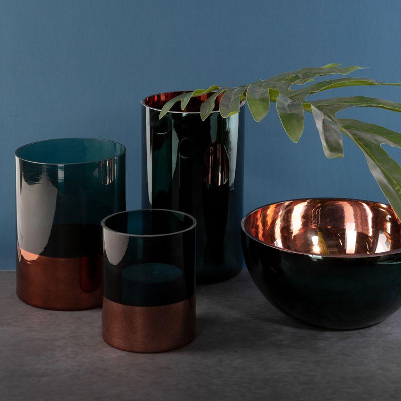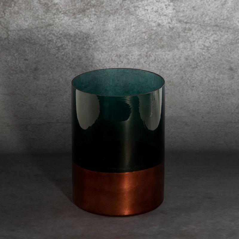 ŚWIECZNIK szklany 15×20 cm szałwiowy, miedziany