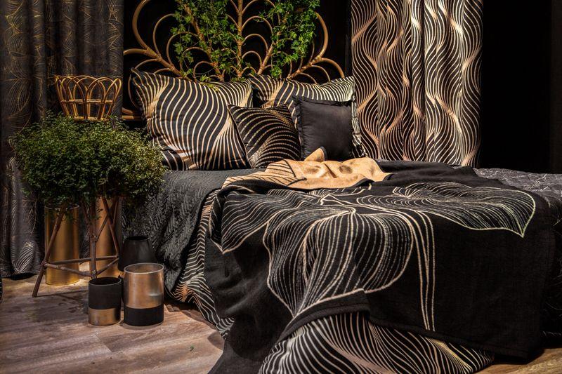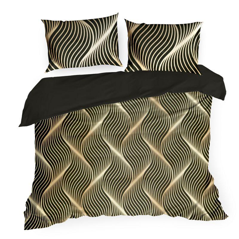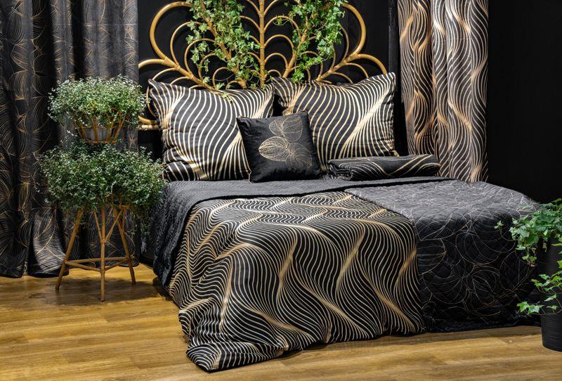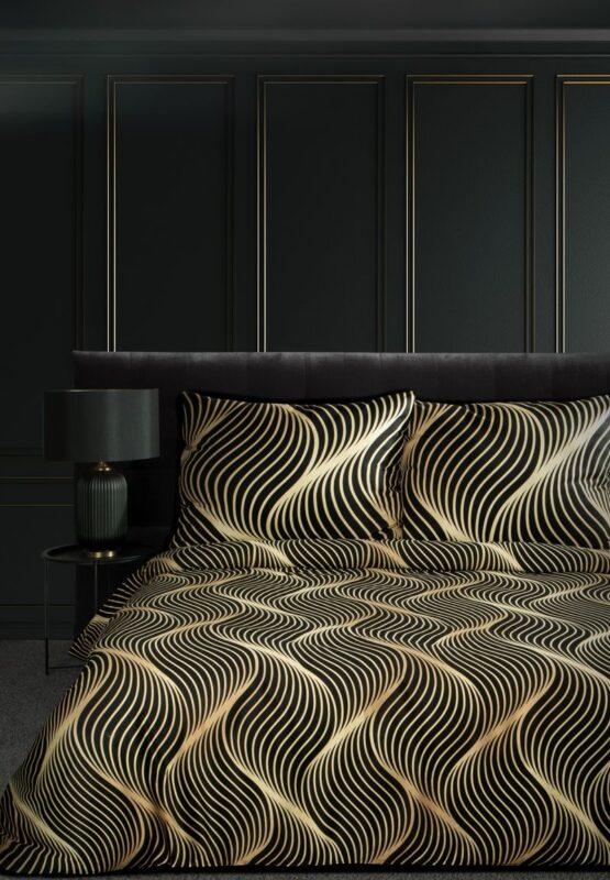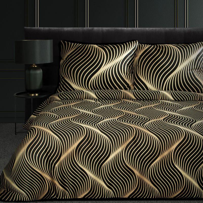 KOMPLET POŚCIELI 160×200 cm makosatyna czarna wzór 2