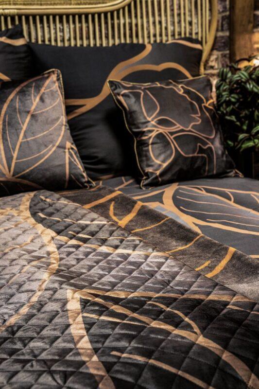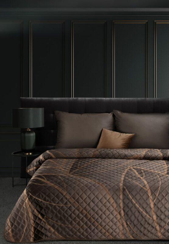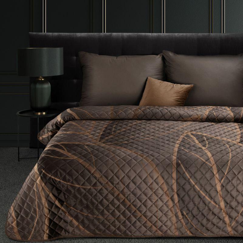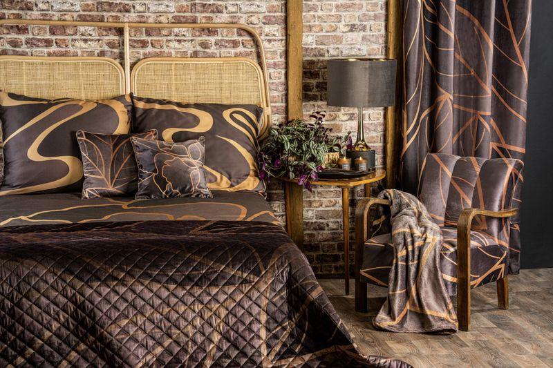 Narzuta welwetowa,drukowana wykonana techniką hot press” szerokość: 170 cm, długość: 210 cm, kolor: brązowy, Gramatura: 200+120+70 GSM, Skład: 100%poliester”