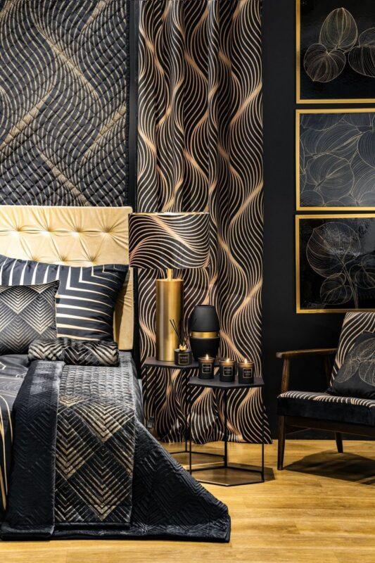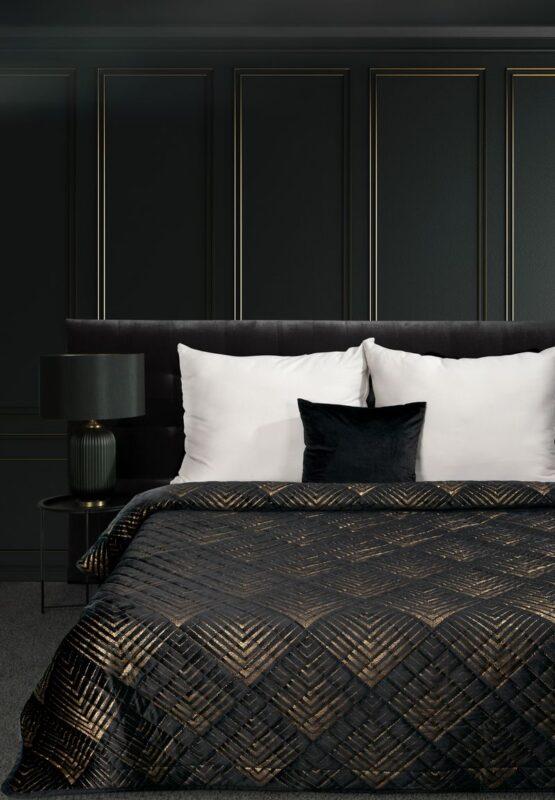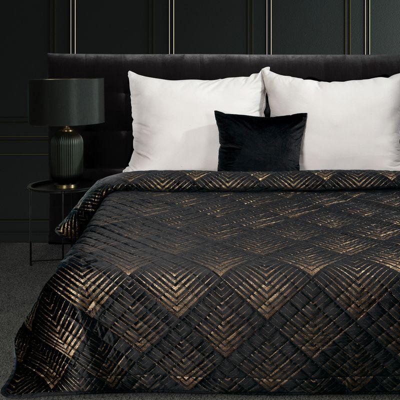 NARZUTA welwetowa 170×210 cm czarna, złota