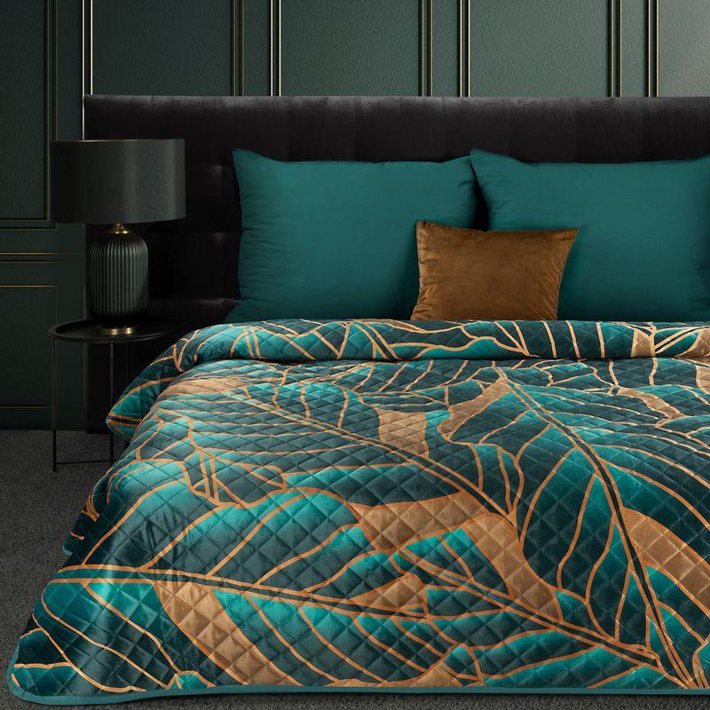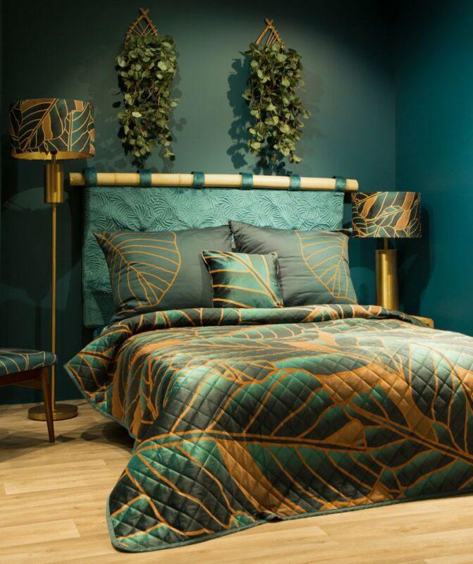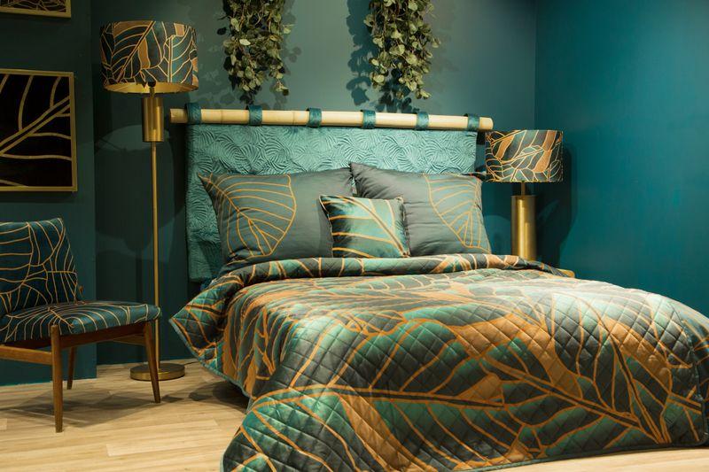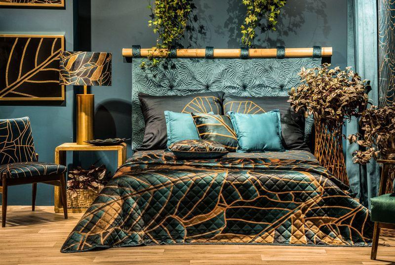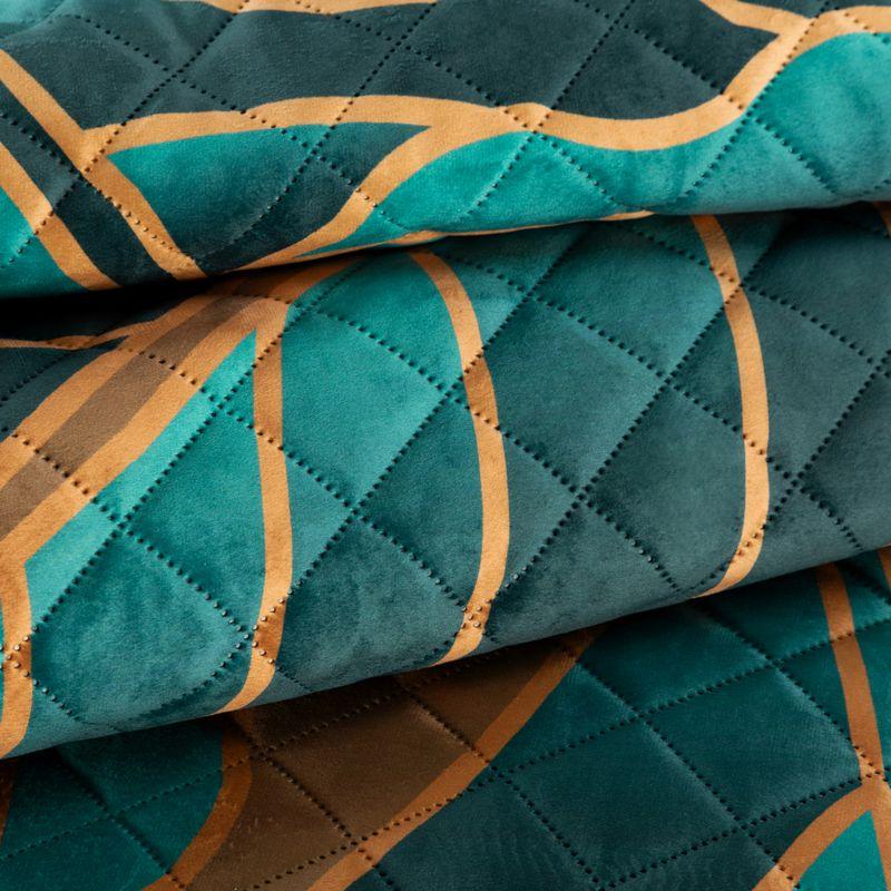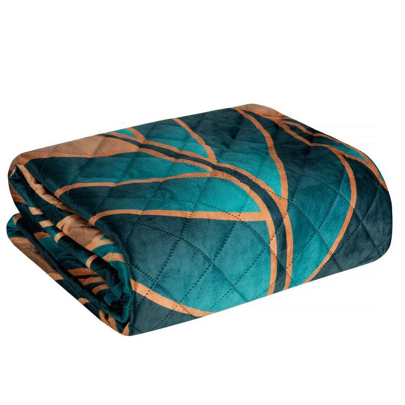 Narzuta welwetowa,drukowana wykonana techniką hot press” szerokość: 170 cm, długość: 210 cm, kolor: turkusowy, Gramatura: 200+120+70 GSM, Skład: 100%poliester”