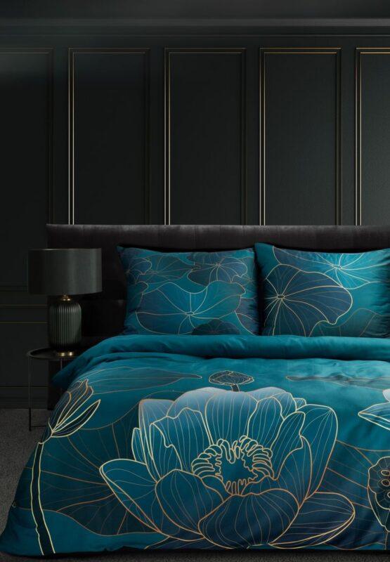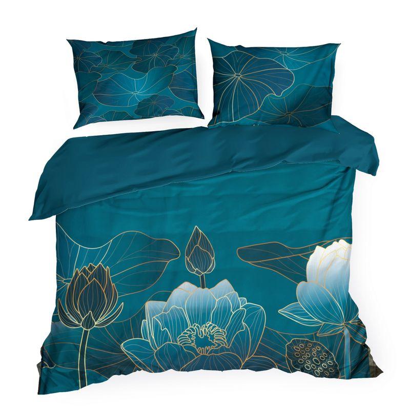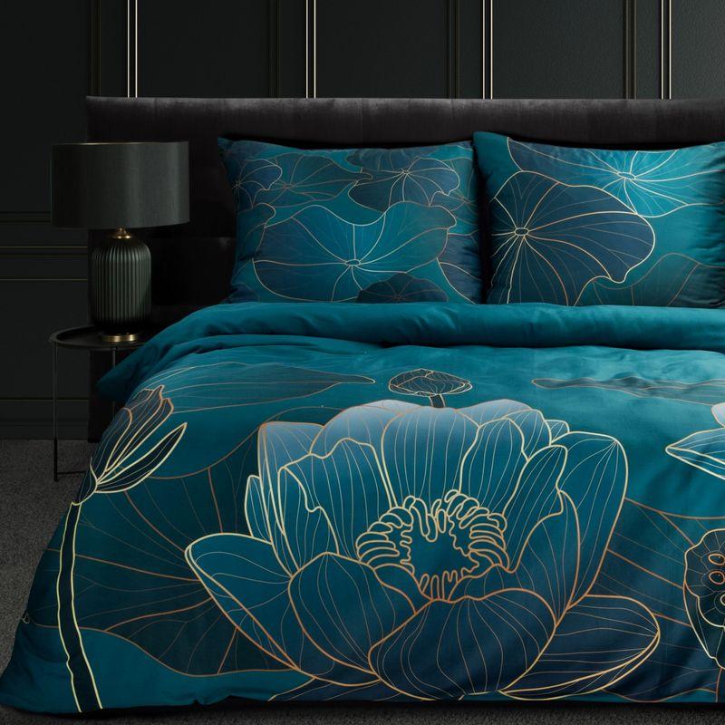 Komplet pościeli z makosatyny z nadrukiem szerokość: 220 cm, długość: 200 , 2 szt. 70 cm, kolor: turkusowy, Gramatura: 125 GSM, Skład: 100% satyna bawełniana