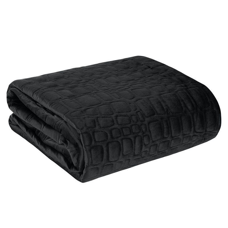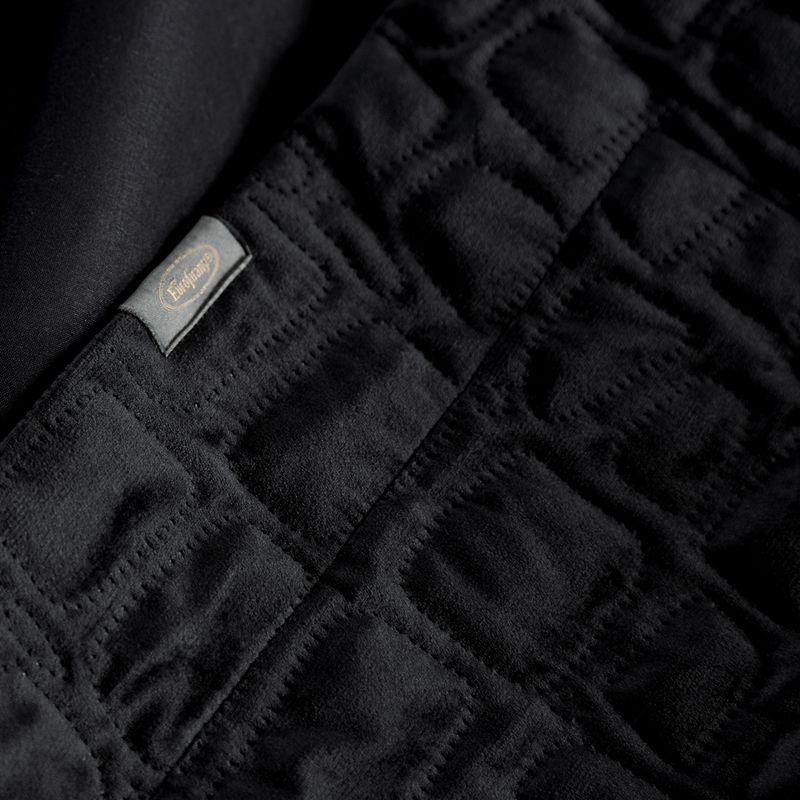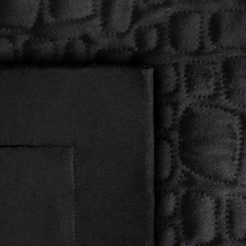 Narzuta welwetowa,wykonana techniką hot press” szerokość: 220 cm, długość: 240 cm, kolor: czarny, Gramatura: 200+120+70 GSM, Skład: 100%poliester”