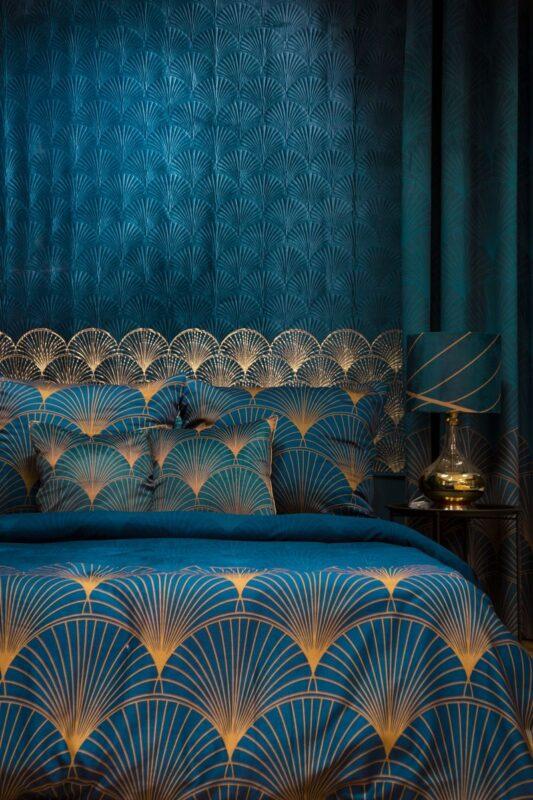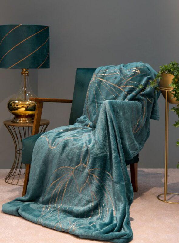 LAMPA STOŁOWA 32×61 cm turkusowa, złota glamour