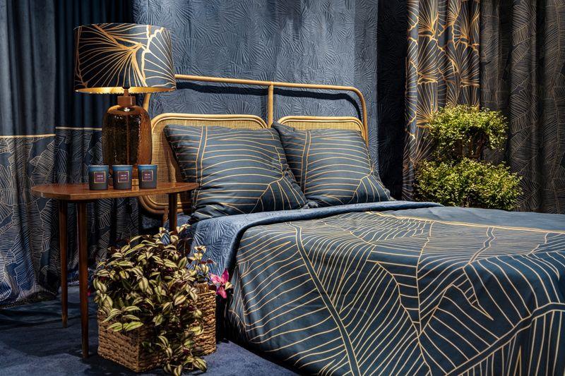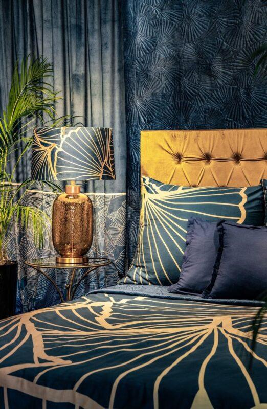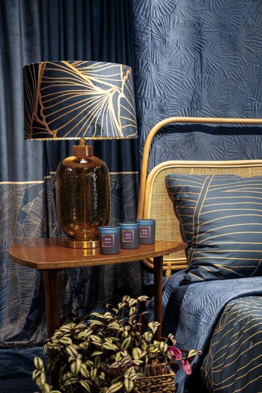 LAMPA STOŁOWA40x69 cm granatowa ze złotym wzorem glamour
