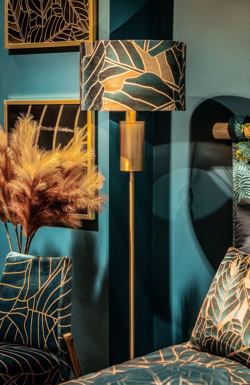 LAMPA PODŁOGOWA 43×157 cm złota z kolorowym abażurem glamour