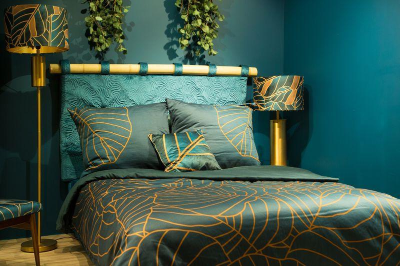 Lampa dekoracyjna, stojąca, z welwetowym abażurem szerokość: (fi) 43 cm, długość: 157 cm, kolor: granatowy, Skład: żelazo:poliester , Zasilanie: CE 220-240V 50HZ , Żarowka: 1 X E27 MAX 100W , Klasa energetyczna: A-G