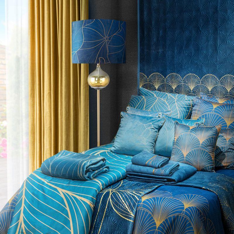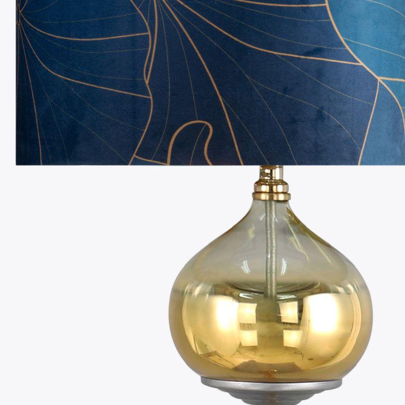 LAMPA PODŁOGOWA 43×157 cm turkusowy abażur w złote liście glamour