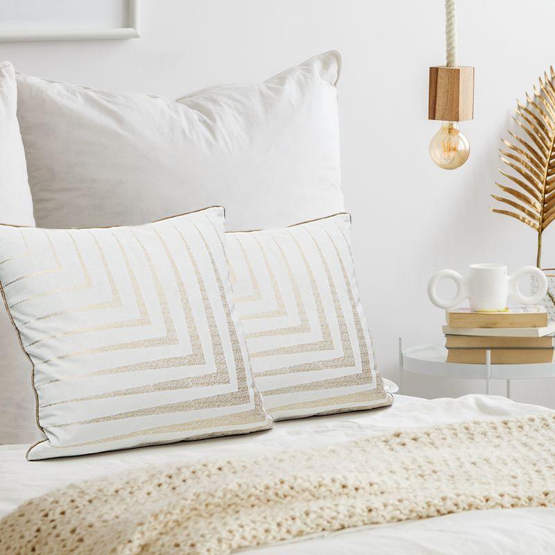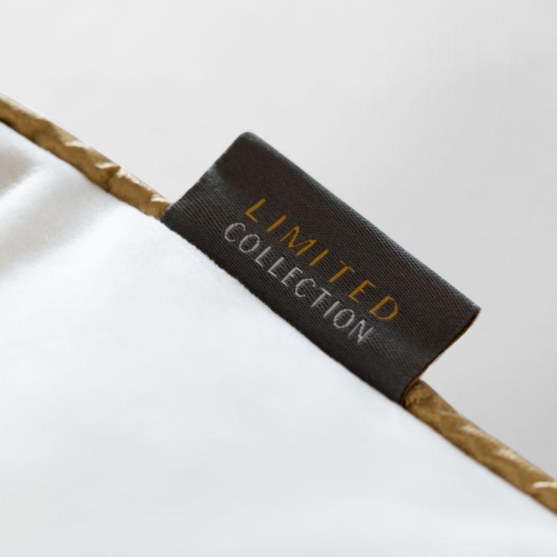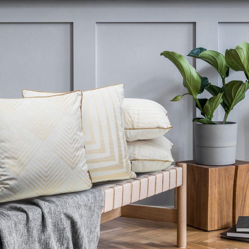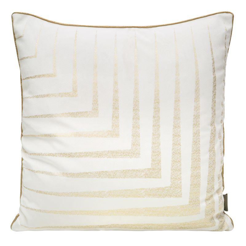 Poszewka welwetowa z nadrukiem obszyta dekoracyjną lamówką będzie idealnym dodatkiem do sypialni czy salonu. Posłuży nie tylko jako dekoracja na pościelonym łóżku, ale również jako poduszka do podparcia podczas czytania książki czy oglądania filmu w salonie. Biała poszewka ze złotą lamówką i dekoracyjnym przeszyciem sprawdzi się w każdym nowoczesnym czy klasycznym wnętrzu. W tym połączeniu kolorystycznym poszewka dostępna jest również w innych wzorach.