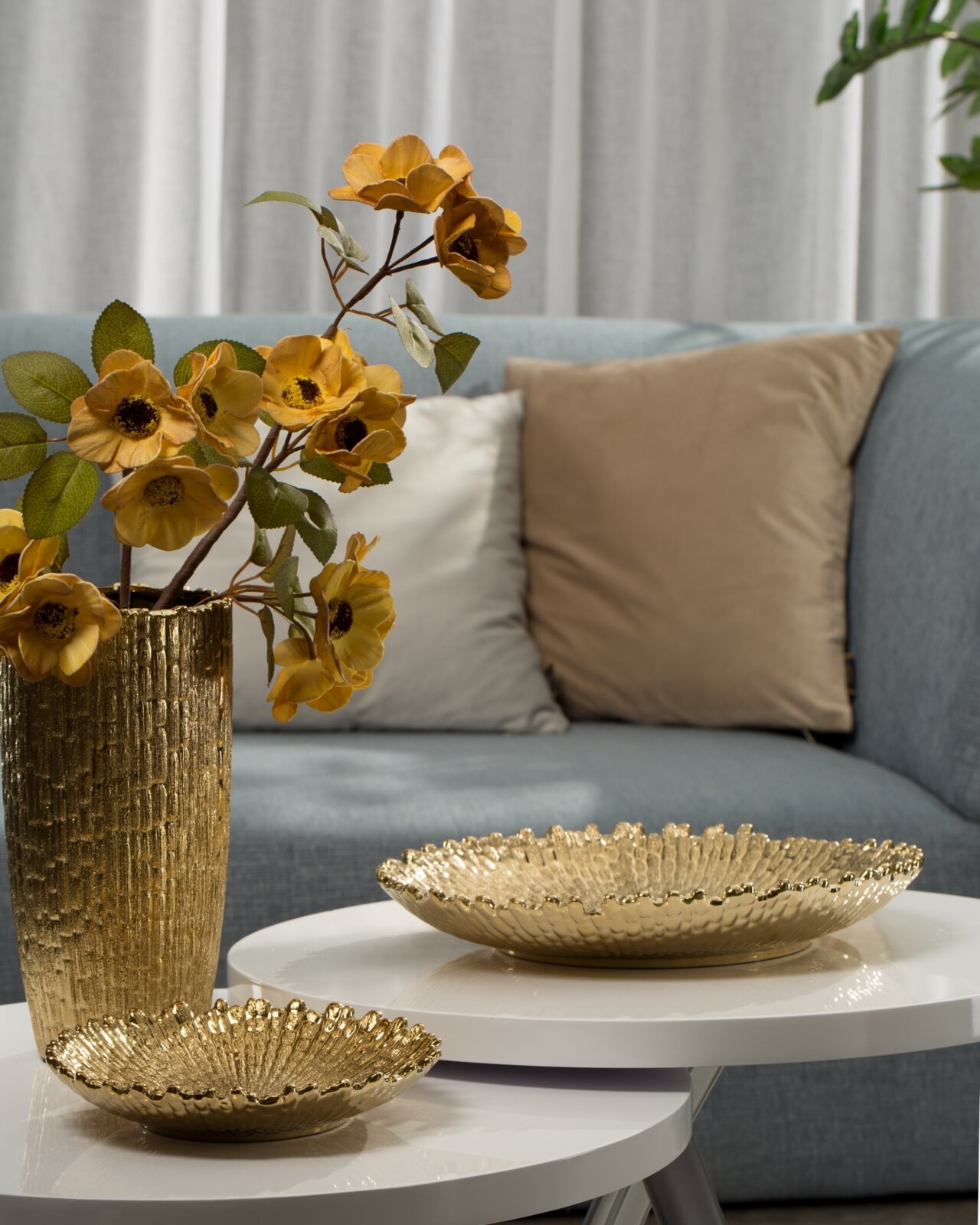 Patera dekoracyjna szerokość: O 32 cm, długość: 6 cm, kolor: złoty, Skład: glinka ceramiczna