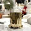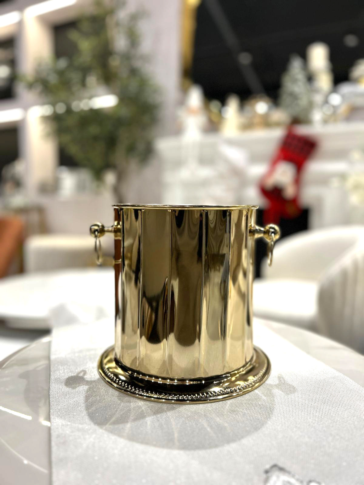 Złoty pojemnik na lód wyróżnia się klasycznym, ponadczasowym designem, który nadaje mu elegancki i stylowy charakter. Jego gładka, metaliczna powierzchnia subtelnie odbija światło, tworząc efekt czystej, hotelowej estetyki. Proporcjonalna forma oraz delikatnie zaokrąglone linie sprawiają, że pojemnik prezentuje się schludnie i bardzo gustownie.