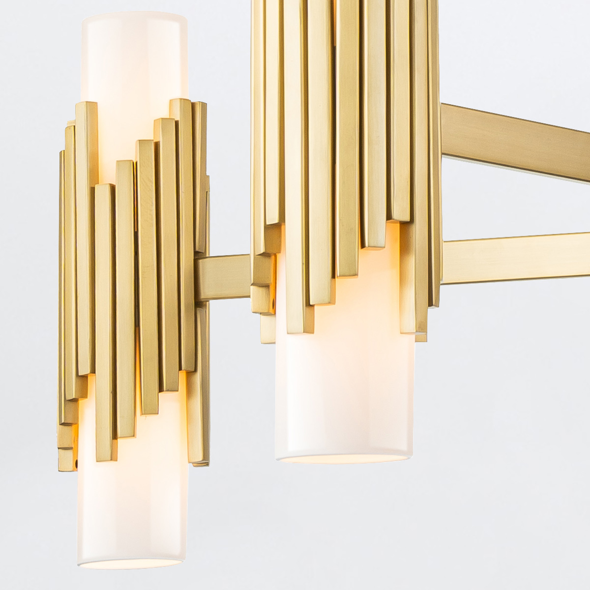 Żyrandol Marvele zachwyca klasyczną elegancją połączoną z nowoczesnym designem. Jego stalowa konstrukcja w złotym wykończeniu i ryflowanymi elementami nadaje wnętrzu luksusowy charakter, a warstwowe szkło opalowe subtelnie rozprasza światło, tworząc miękki, przytulny blask. Smukłe linie i harmonijna forma żyrandola Marvele sprawiają, że lampa staje się centralnym elementem dekoracyjnym każdego pomieszczenia, dodając mu ponadczasowego stylu i elegancji. Żyrandol Marvele wykonany jest z wysokiej jakości stali oraz warstwowego szkła opalowego, co zapewnia trwałość i solidność konstrukcji. Precyzyjne wykończenie i złote akcenty gwarantują produkt premium, który zachowuje estetyczny wygląd przez wiele lat. Żyrandol Marvele doskonale sprawdzi się w salonie, sali konferencyjnej, lobby hotelowym czy restauracji, wprowadzając elegancki i luksusowy akcent. Jego ponadczasowy design pasuje zarówno do tradycyjnych, jak i nowoczesnych aranżacji, czyniąc lampę efektownym punktem centralnym pomieszczenia, który podkreśla charakter i styl wnętrza. Kolor żyrandola: złoty